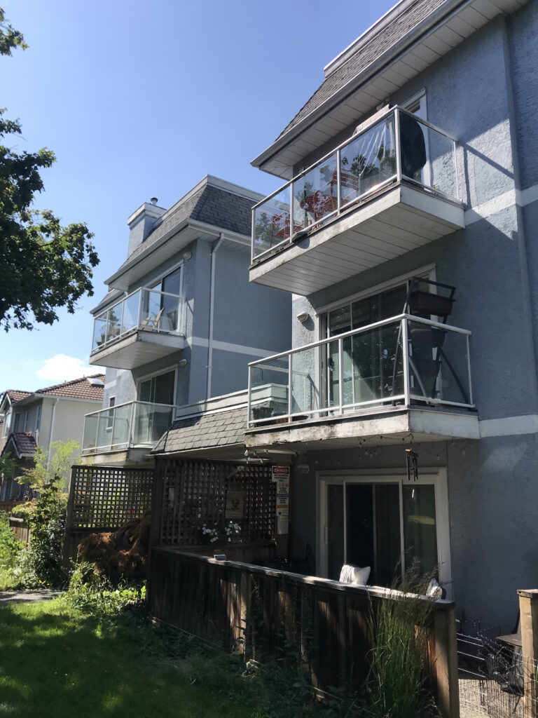 The above strata deck project pictures illustrate the before, during, and after results of our skilled vinyl deck work and waterproofing. The typical scope of work involves railing removal, cleanup, and re-installation, followed by siding removal, cleanup, and re-installation. Additionally, it includes the removal and disposal of old vinyl and flashing, plywood repairs, new flashing installation, and new vinyl installation. Finally, we perform cleanup, top flashing installation, painting, and any other repairs as needed. This is an example of a complete deck package, tailored to individual strata needs.